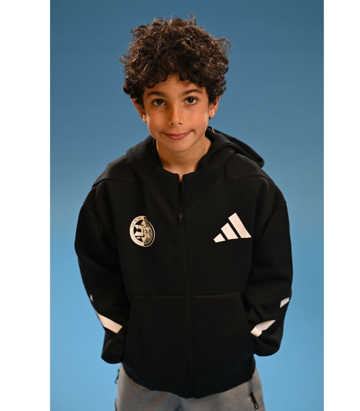 ג'קט עם רוכסן ADIDAS Z.N.E לילדים בצבע שחור עם לוגו הקבוצה.