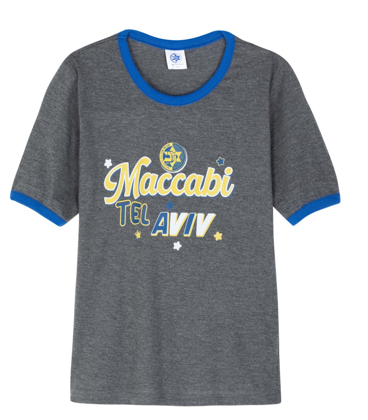 סט פיג'מה קצר בצבע אפור לילדים של מכבי RAPYD תל אביב.