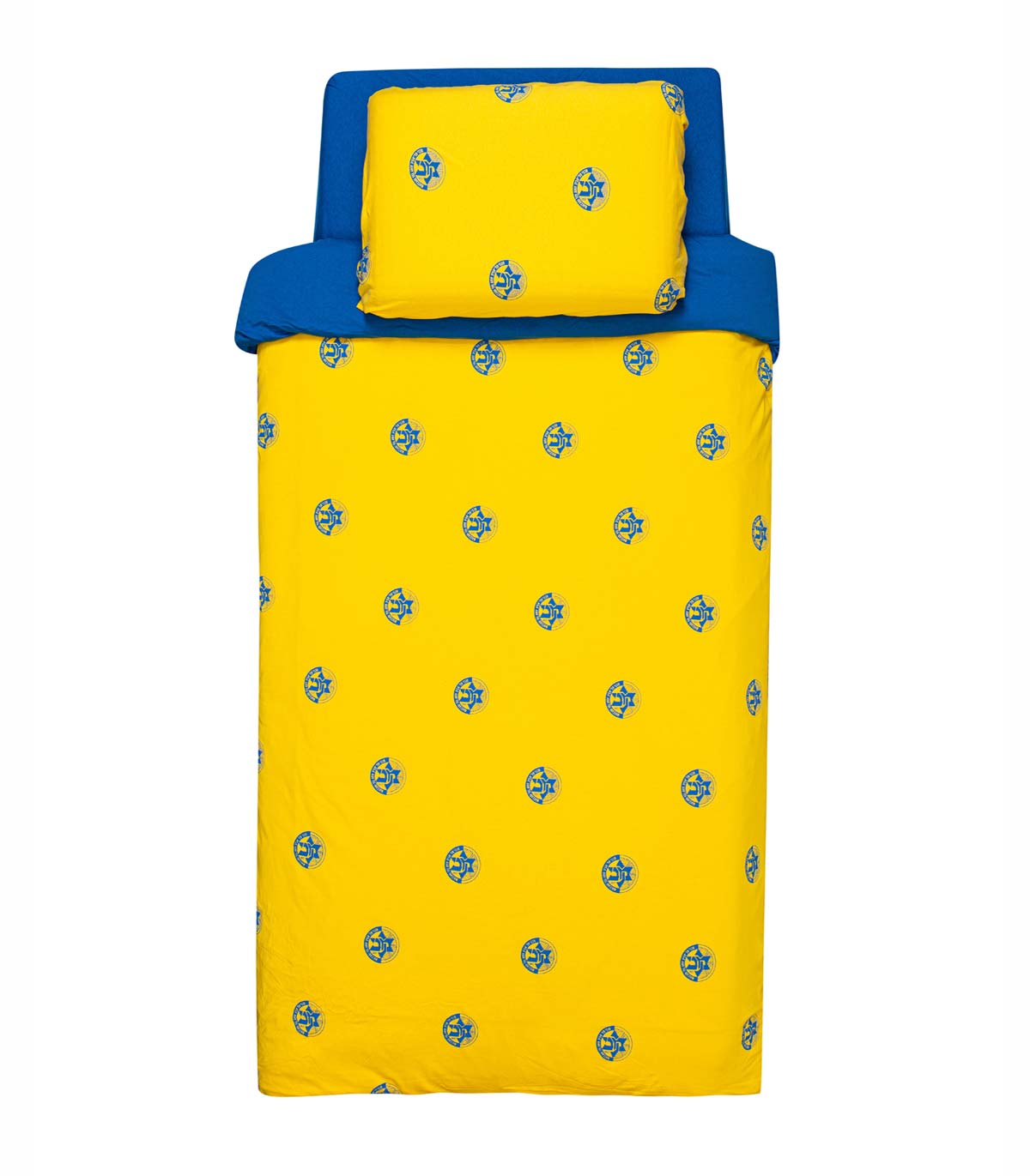 סט מצעים למיטה וחצי, גודל 120/200 ס"מ, דגם 'ג'רסי' בצבעים כחול צהוב עם לוגו הקבוצה