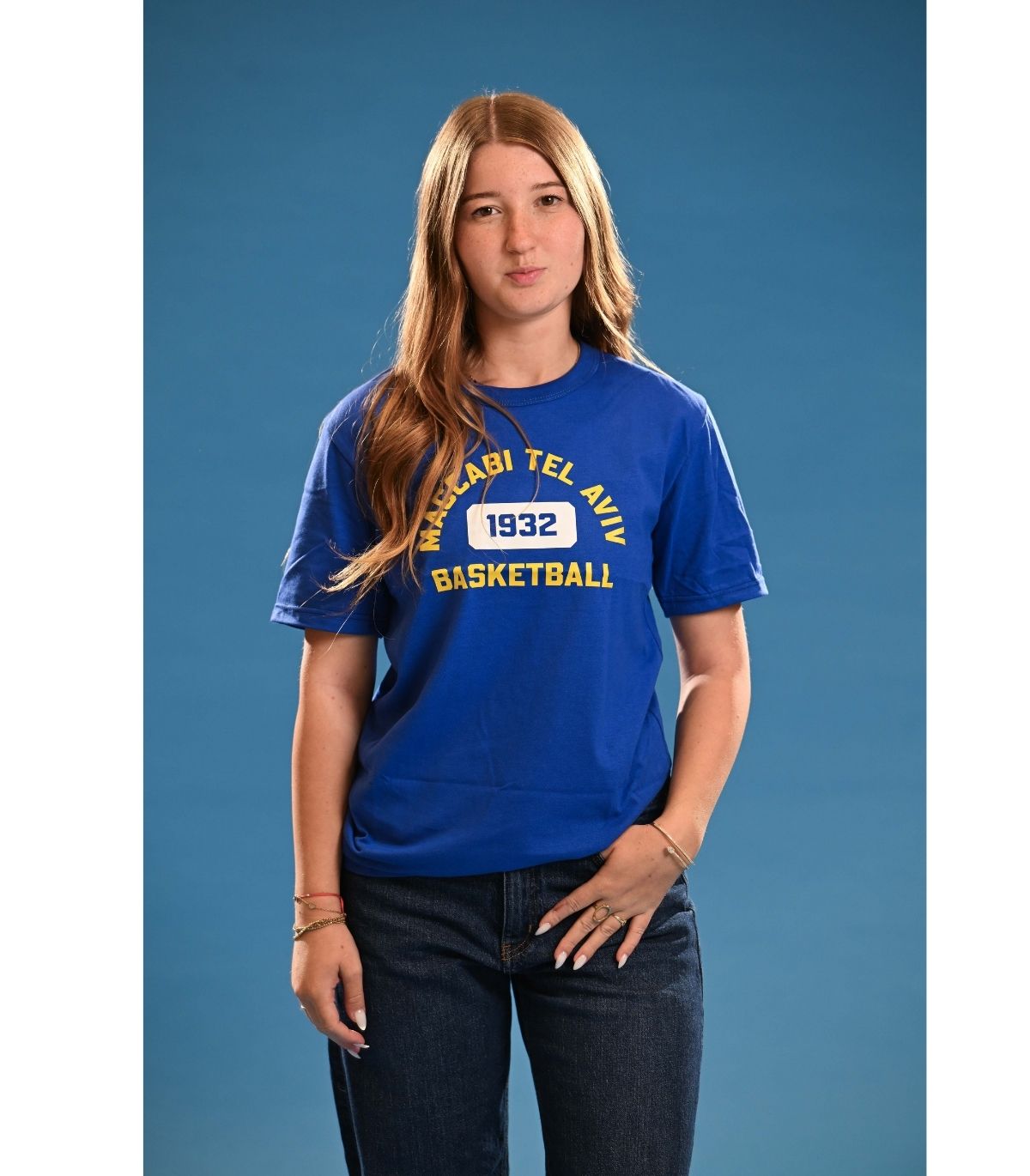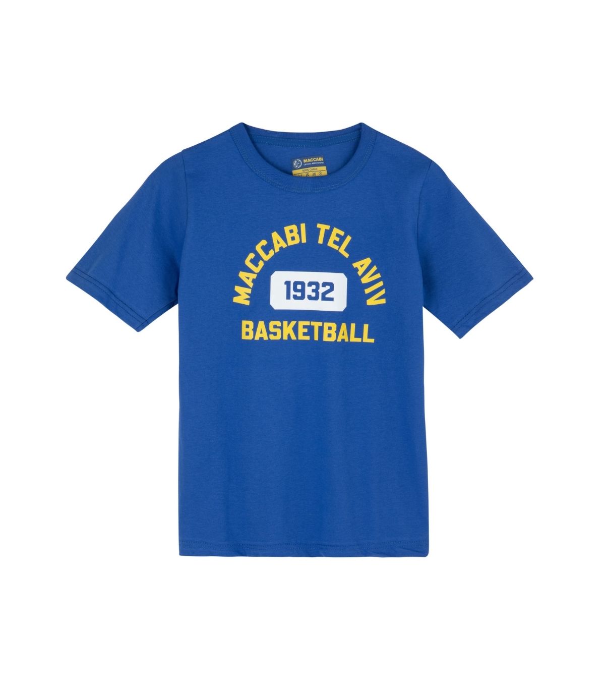 טי שירט מכבי תל אביב בעיצוב 'BASKETBALL 1932' לילדים בצבע כחול מקולקציית ביגוד MCB.